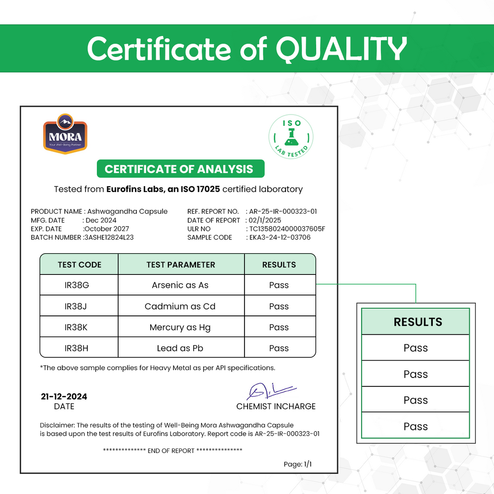 At Mora Foods, we understand the challenges of modern life. Our Ashwagandha Tablets are crafted from the revered Ashwagandha root, an adaptogen prized in Ayurvedic medicine for its ability to promote balance and well-being.