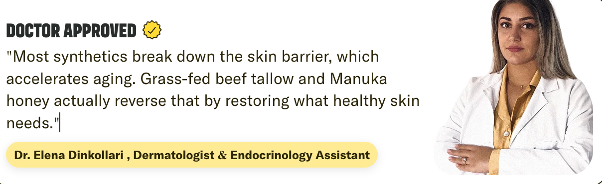 🌿 Ingredientes reales, resultados reales: sebo grass-fed, miel de manuka, aceite de oliva prensado en frío y vitamina E — nada más.